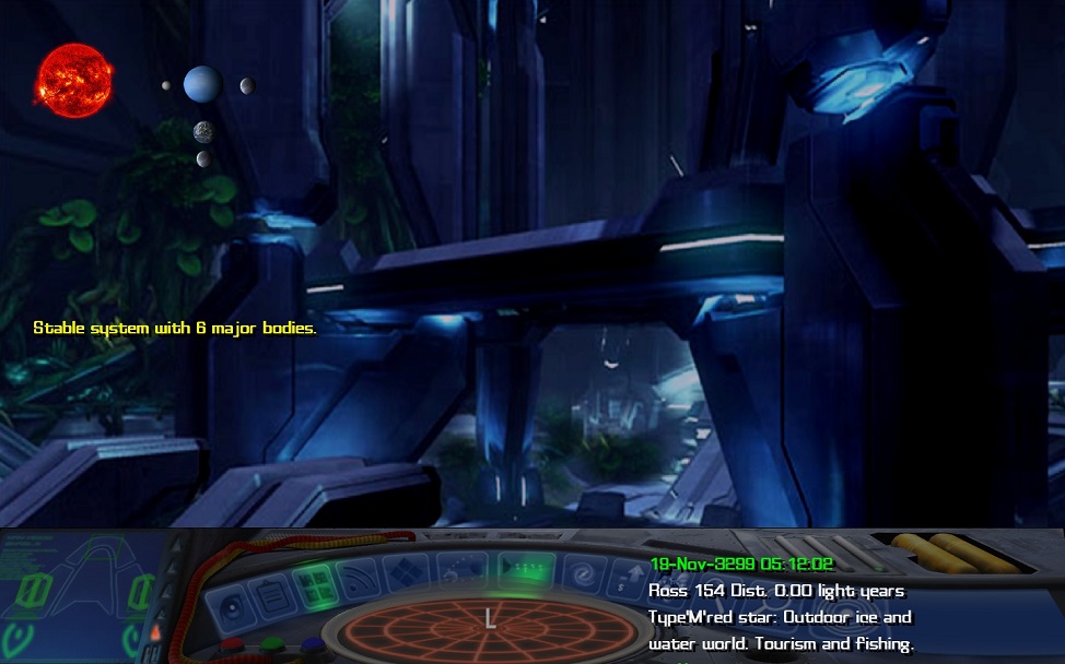 In Frontier, no mention is made of Ross 154 being a flare star, but it is well known for the unique ecosystem on the ice world of Merlin. The fishing industry here is renowned throughout the galaxy and there is also a booming tourist industry. | |