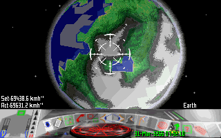 One disappointing thing about Frontier First Encounters is that Earth was rendered as a featureless brown blob instead of the beautiful blue paradise it should have been. This was apparently due to memory restrictions when the game was being developed. |