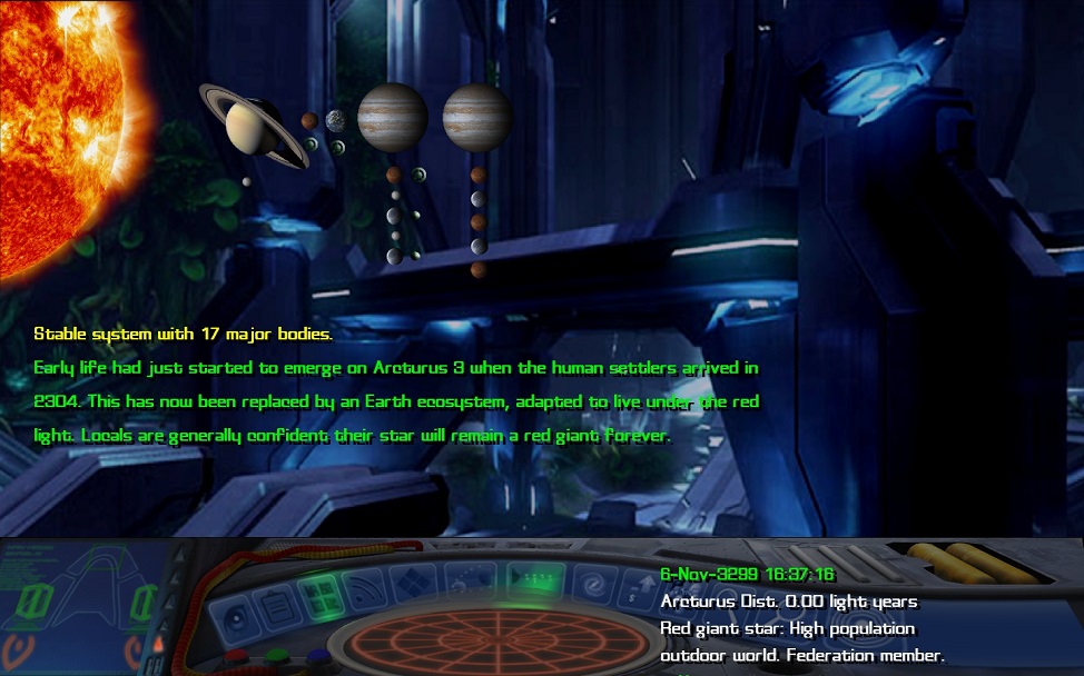 In Frontier, Arcturus is well know for the planet Discovery, where seasons last for around seven Earth years. This gives rise to large re-settlement patterns which follow the summer seasons around the planet, and cause those who don't migrate to grow up with distinct personalities according to which season they spent their formative years in. | |