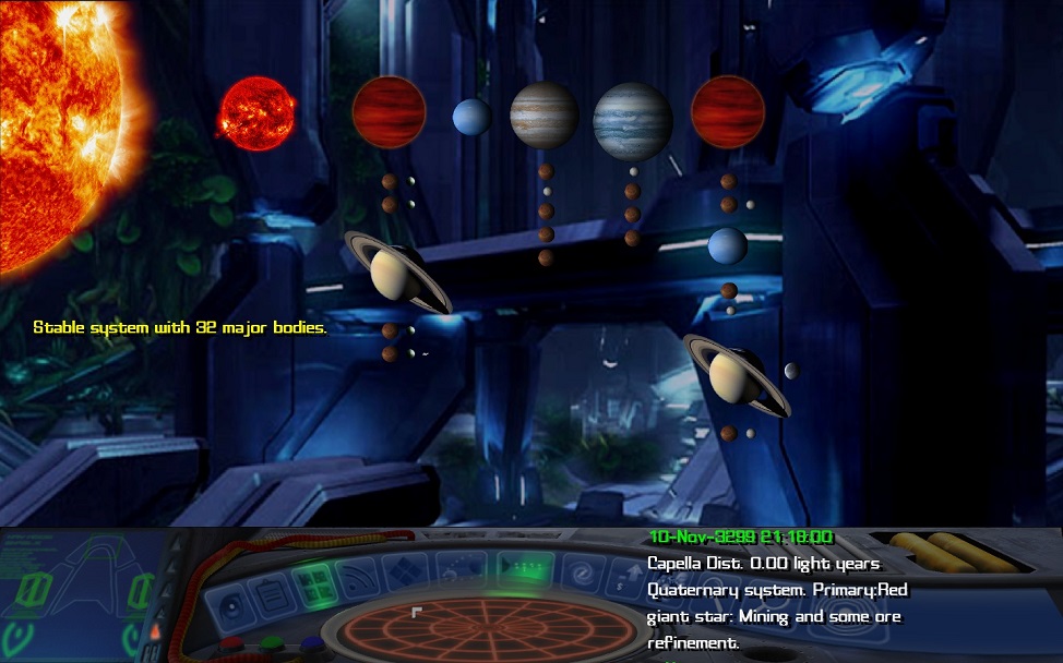 In Frontier, Capella is correctly portrayed as a binary system, albeit a fairly lawless one with a low population. | |
